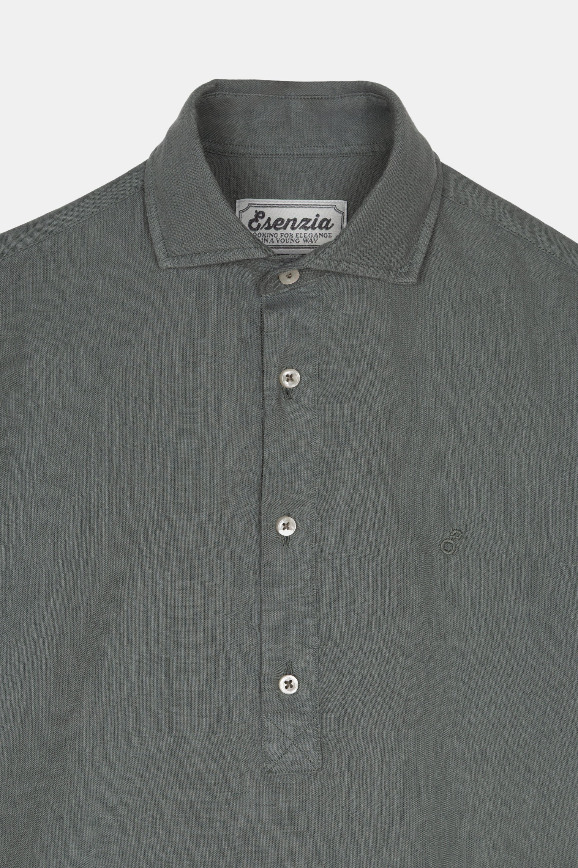 WASHED GREEN LINEN REGULAR POLO SHIRT