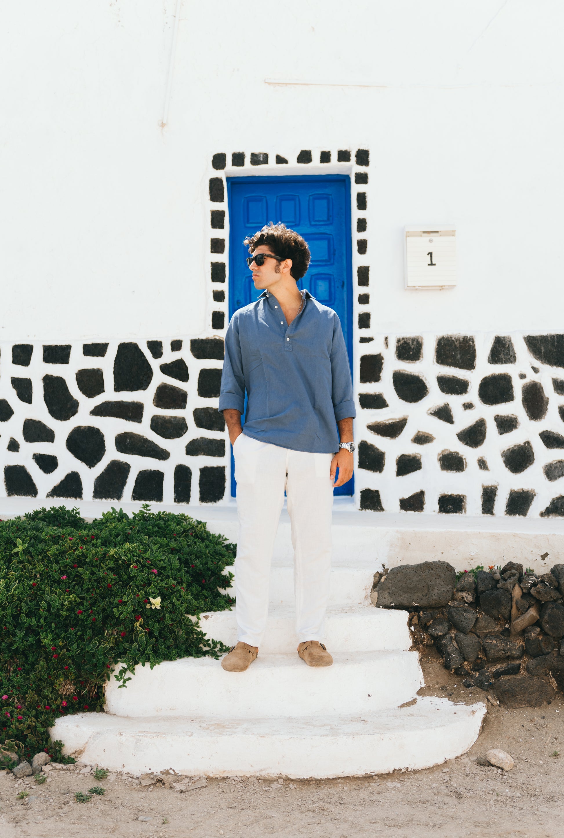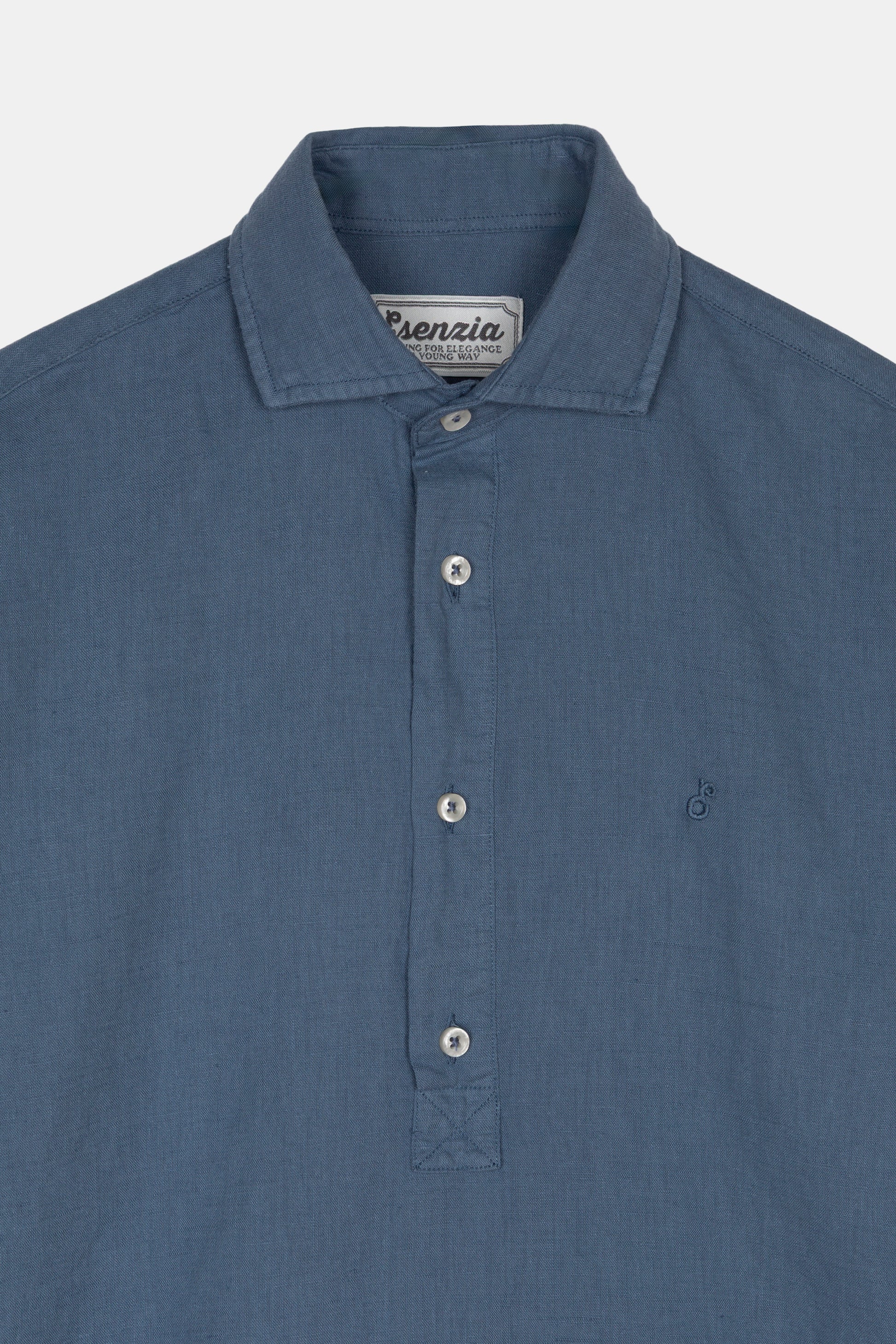 Linen polo shirt crafted from a blend of 55% linen and 45% cotton, offering a lightweight, fresh, and breathable feel. Garment-dyed for a soft touch and a naturally faded look. Features a four-button placket at the front and includes two spare buttons.