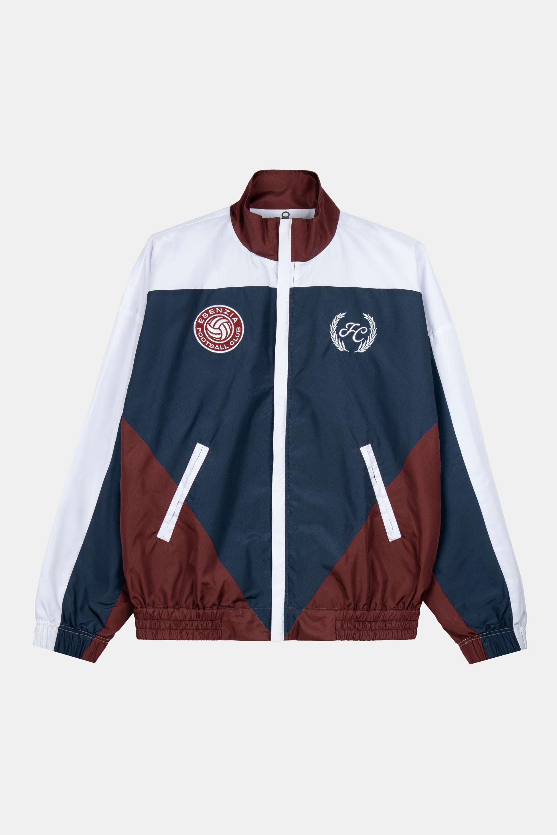 100% polyester shell (100–110 g/m²) | 100% polyester mesh lining (90–100 g/m²) | Lightweight windbreaker construction | Front zip closure | Side pockets | Elastic cuffs and hem