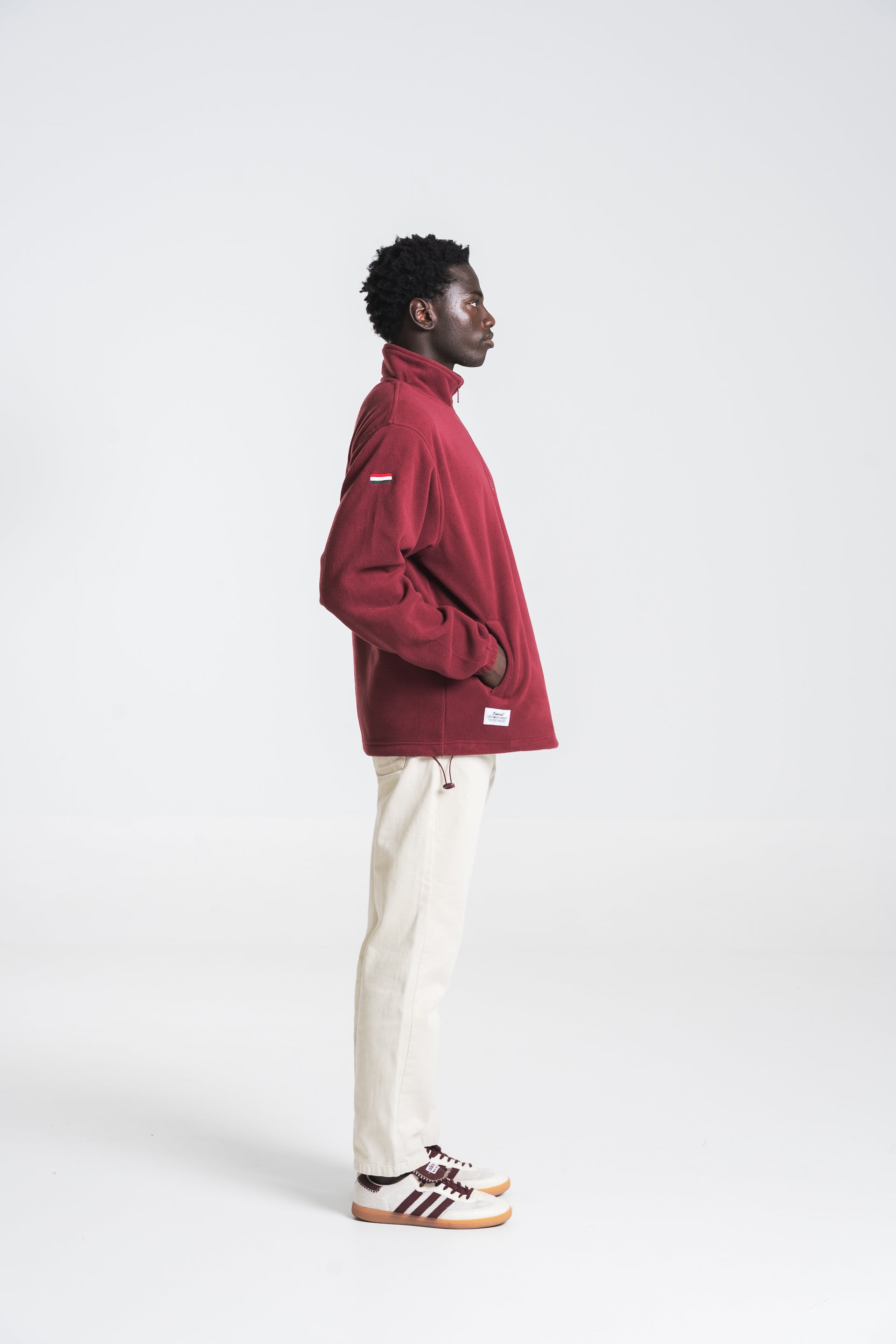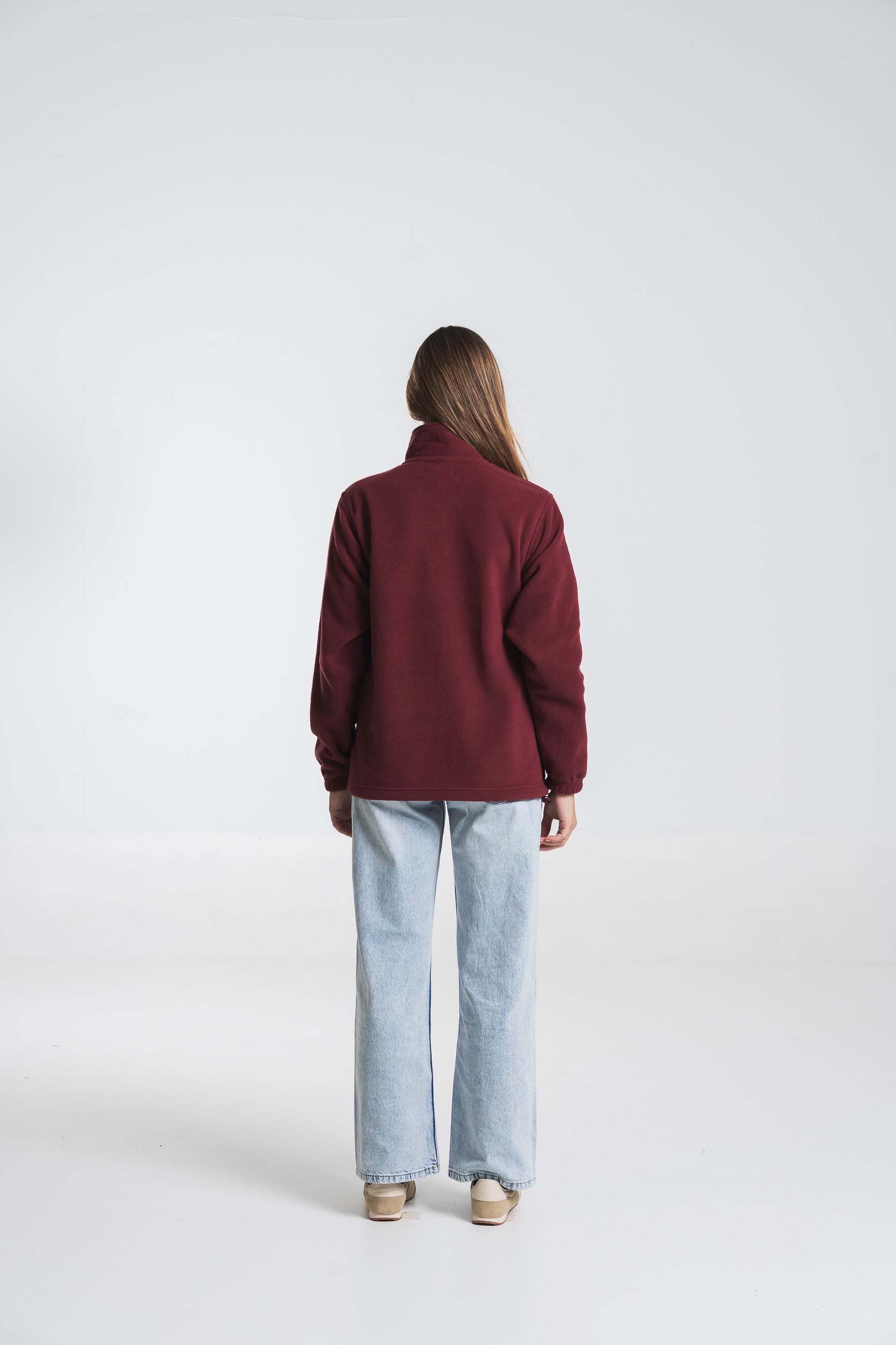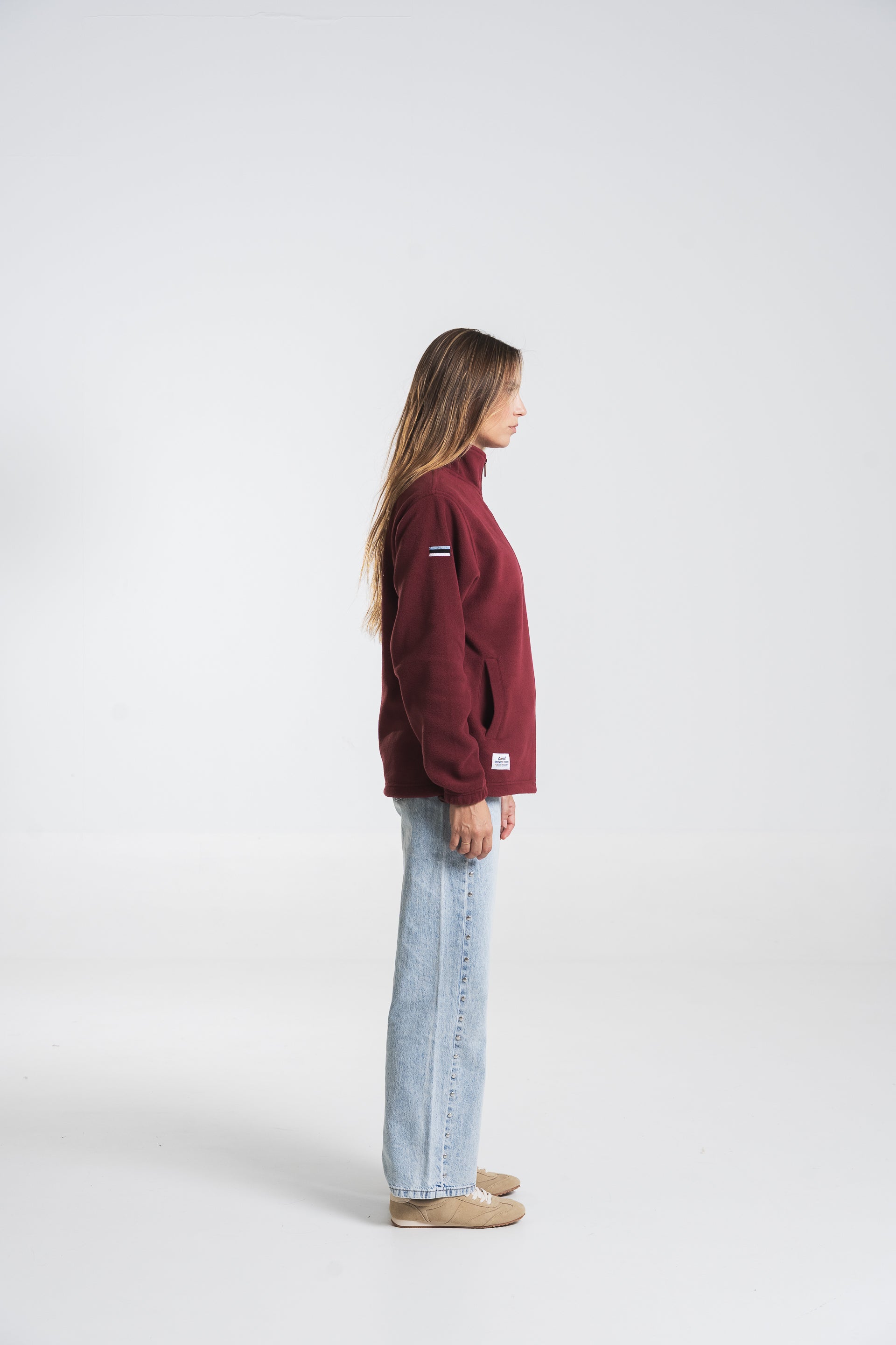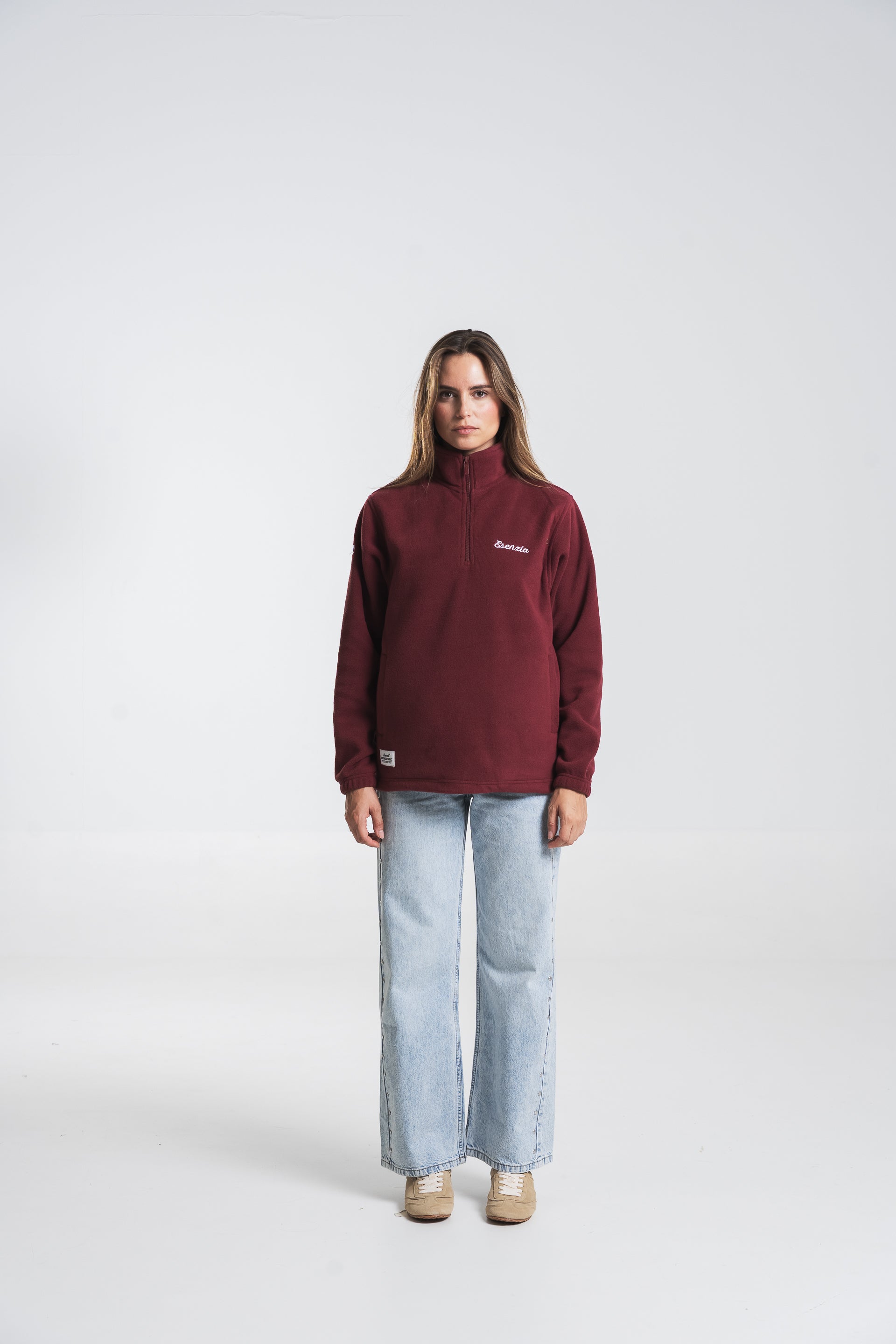 Forro polar confeccionado con poliéster de 300 g/m² y corte regular fit. Presenta un cuello alto, bolsillos frontales, cierre de media cremallera con tirador personalizado y ajustadores internos en la cintura. El acabado micropolar antipilling evita la formación de "bolitas", garantizando mayor durabilidad.