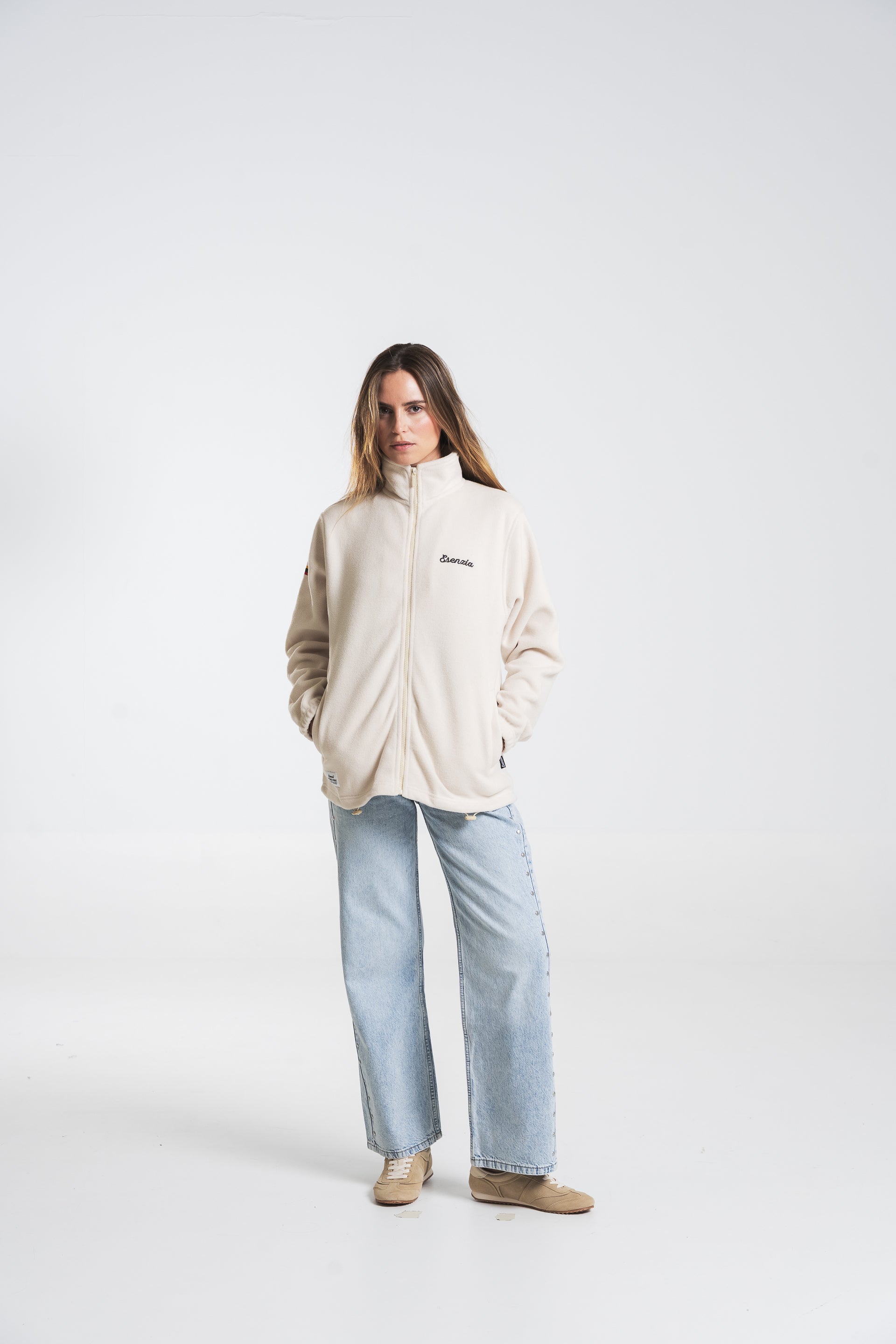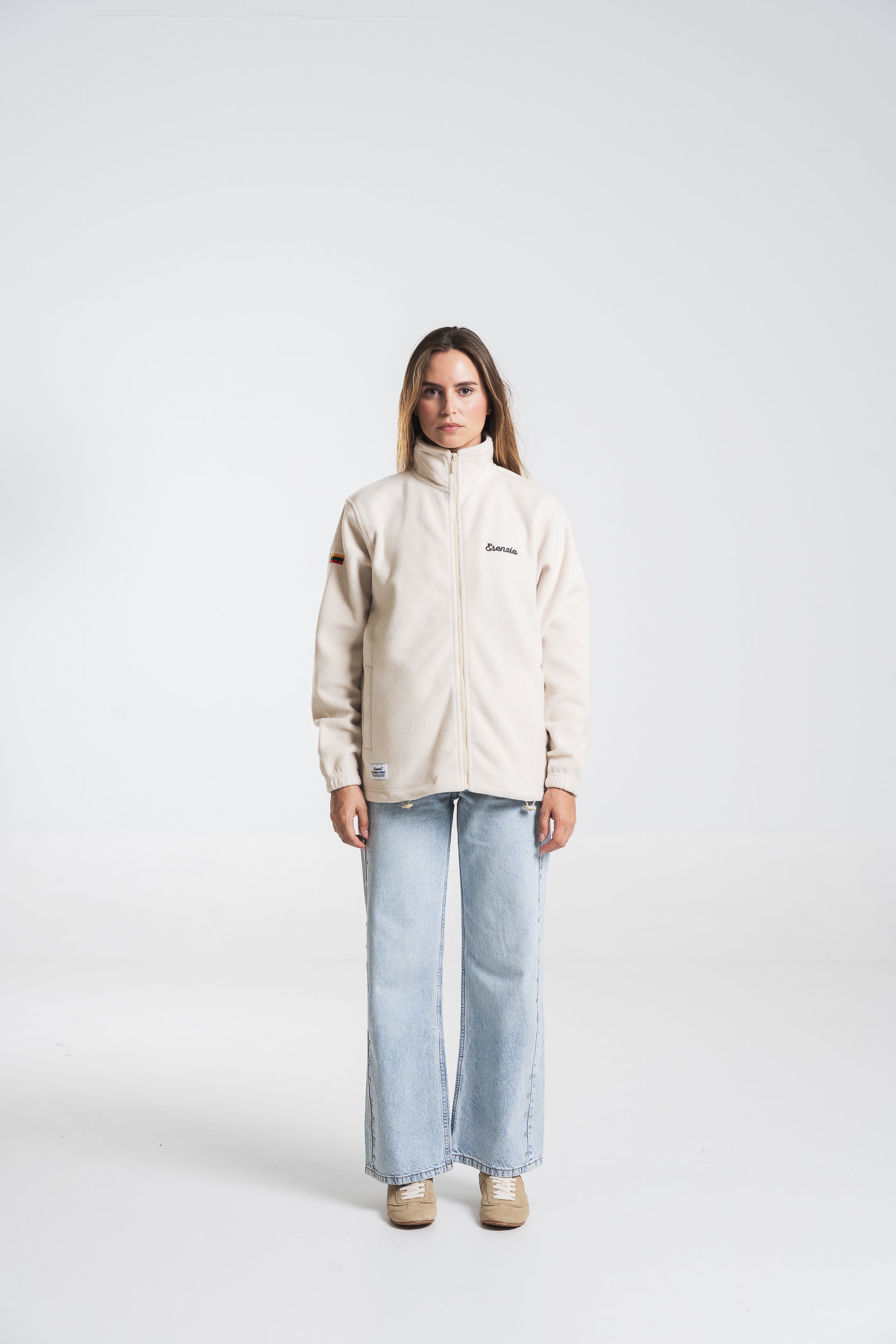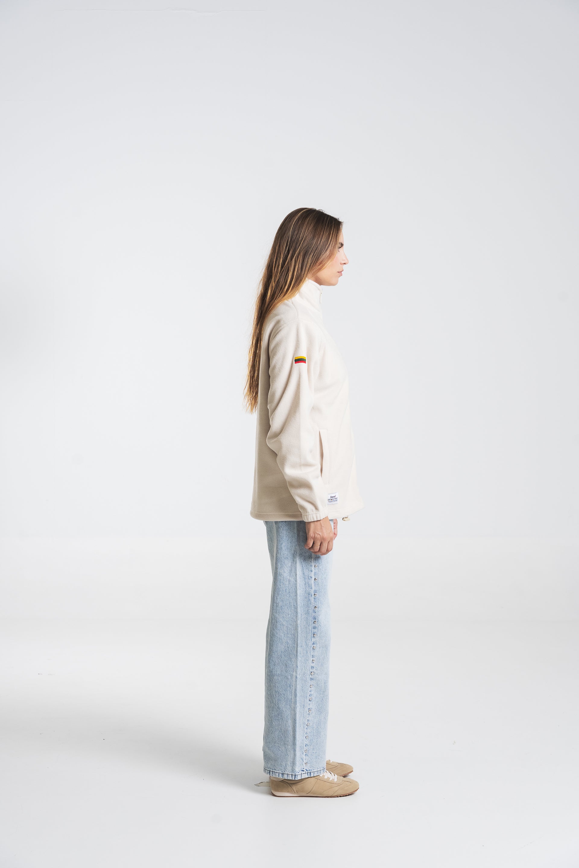 Forro polar confeccionado con poliéster de 300 g/m² y corte regular fit. Presenta un cuello alto, bolsillos frontales, cierre de cremallera completa con tirador personalizado y ajustadores internos en la cintura. El acabado micropolar antipilling evita la formación de "bolitas", garantizando mayor durabilidad.