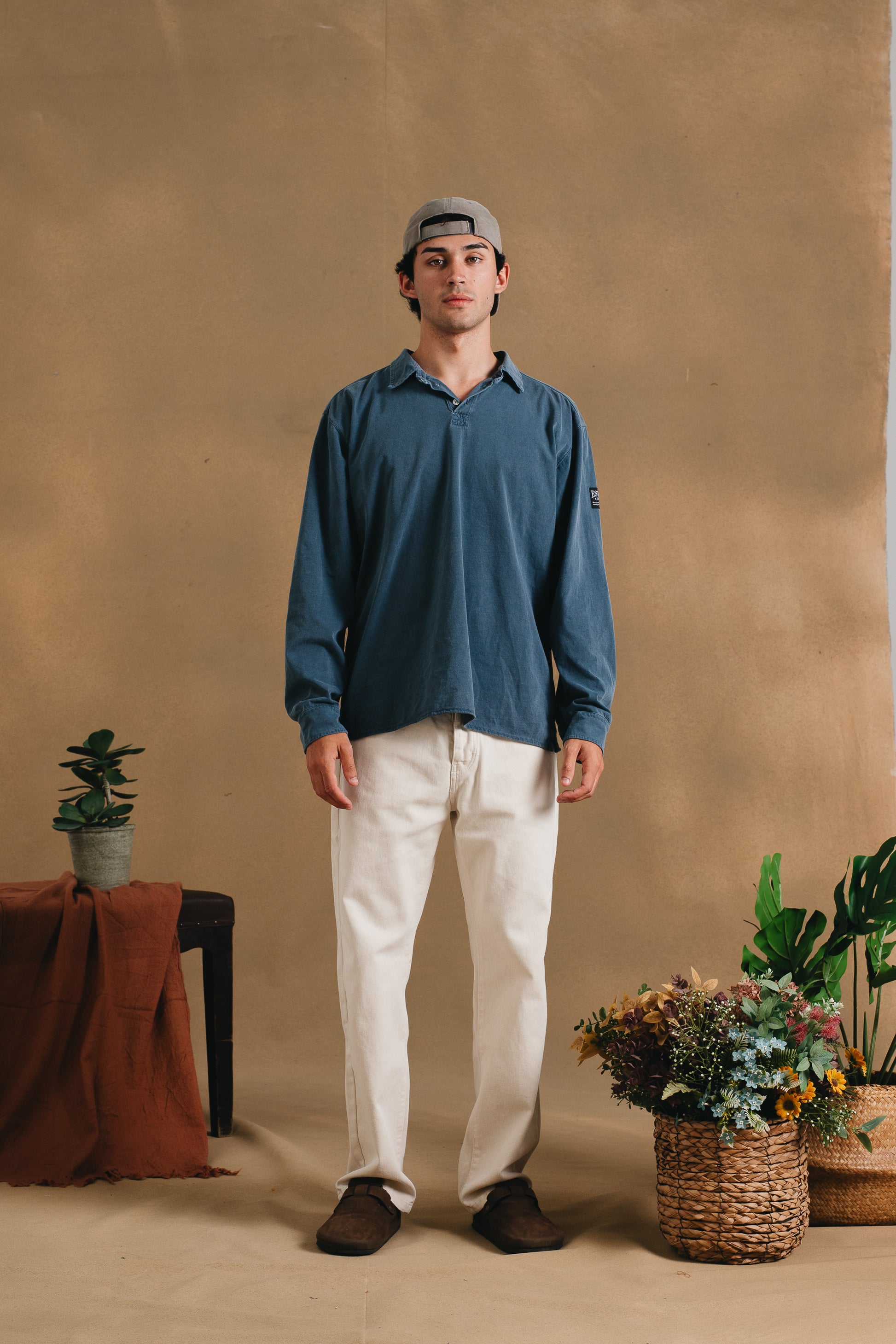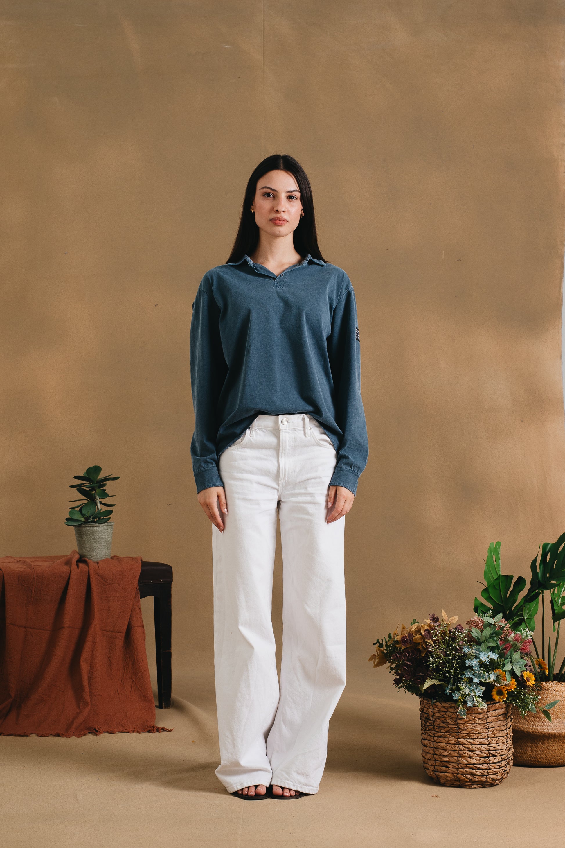 Longsleeve polo shirt made from 100% cotton with a 180 g/m² fabric weight, garment-dyed for a soft feel and a unique washed finish. Features an arm patch for a distinctive touch. Comfortable, versatile, and full of character.