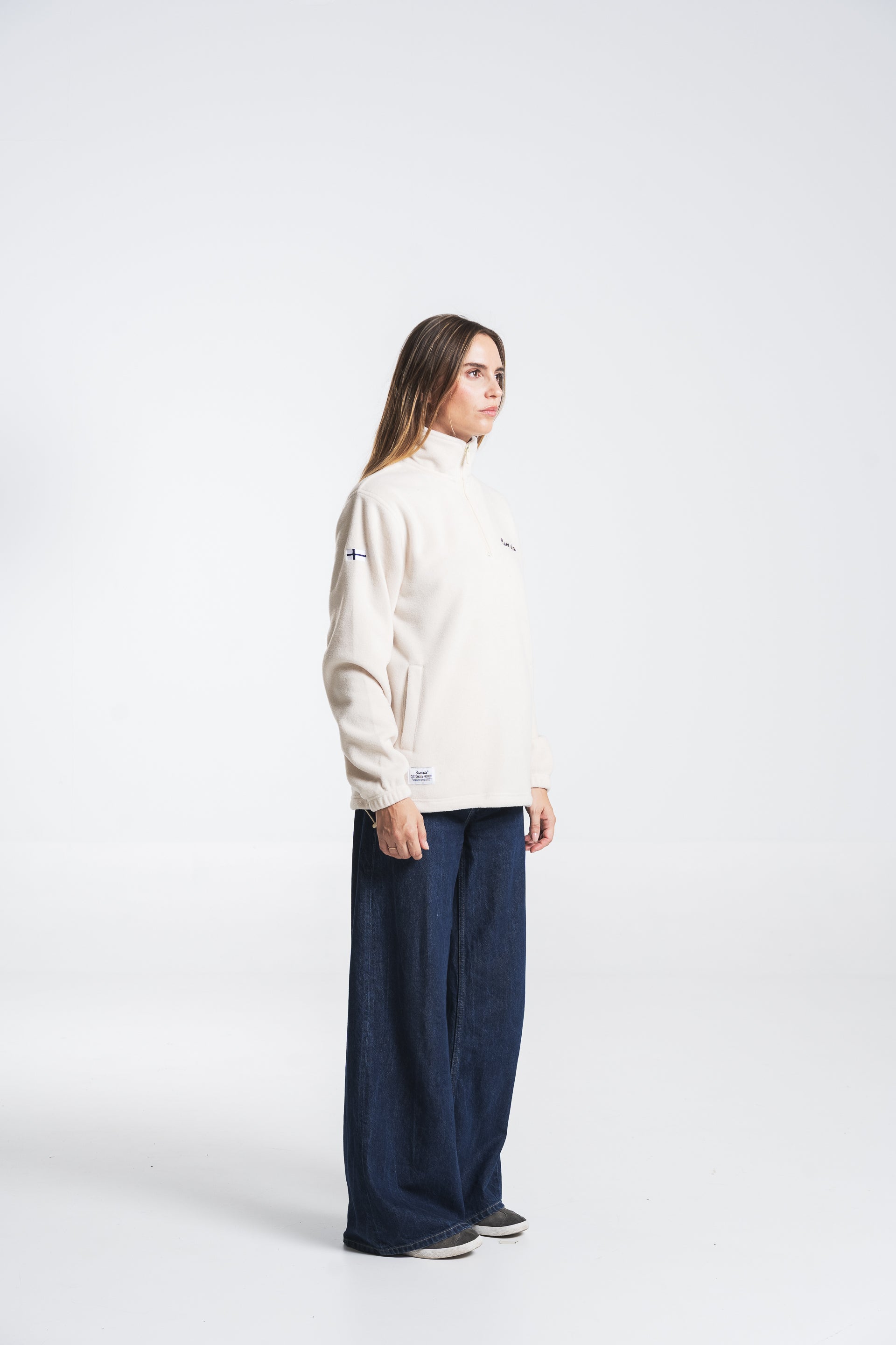 Polaire en polyester 300 g/m² coupe regular fit. Il présente un col haut, poches avant, demi-zip avec tirette personnalisée et ajustages internes à la taille. La finition micropolaire antipilling évite la formation de bouloches, garantissant une plus grande durabilité.