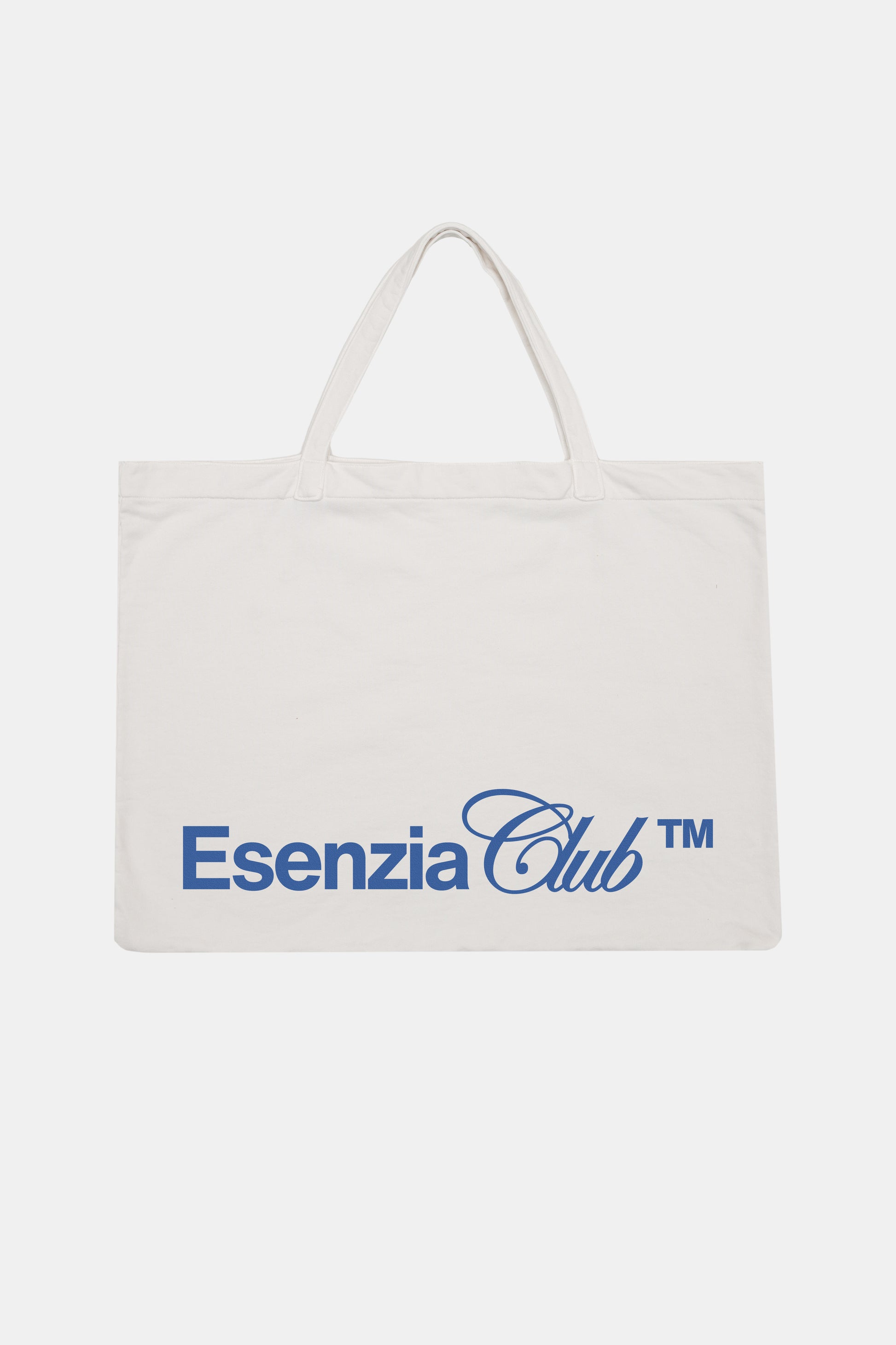 Large tote bag made from 100% high-quality cotton. Structured design with reinforced handles and a front print featuring the Esenzia Club™ logo. Made in Portugal.
