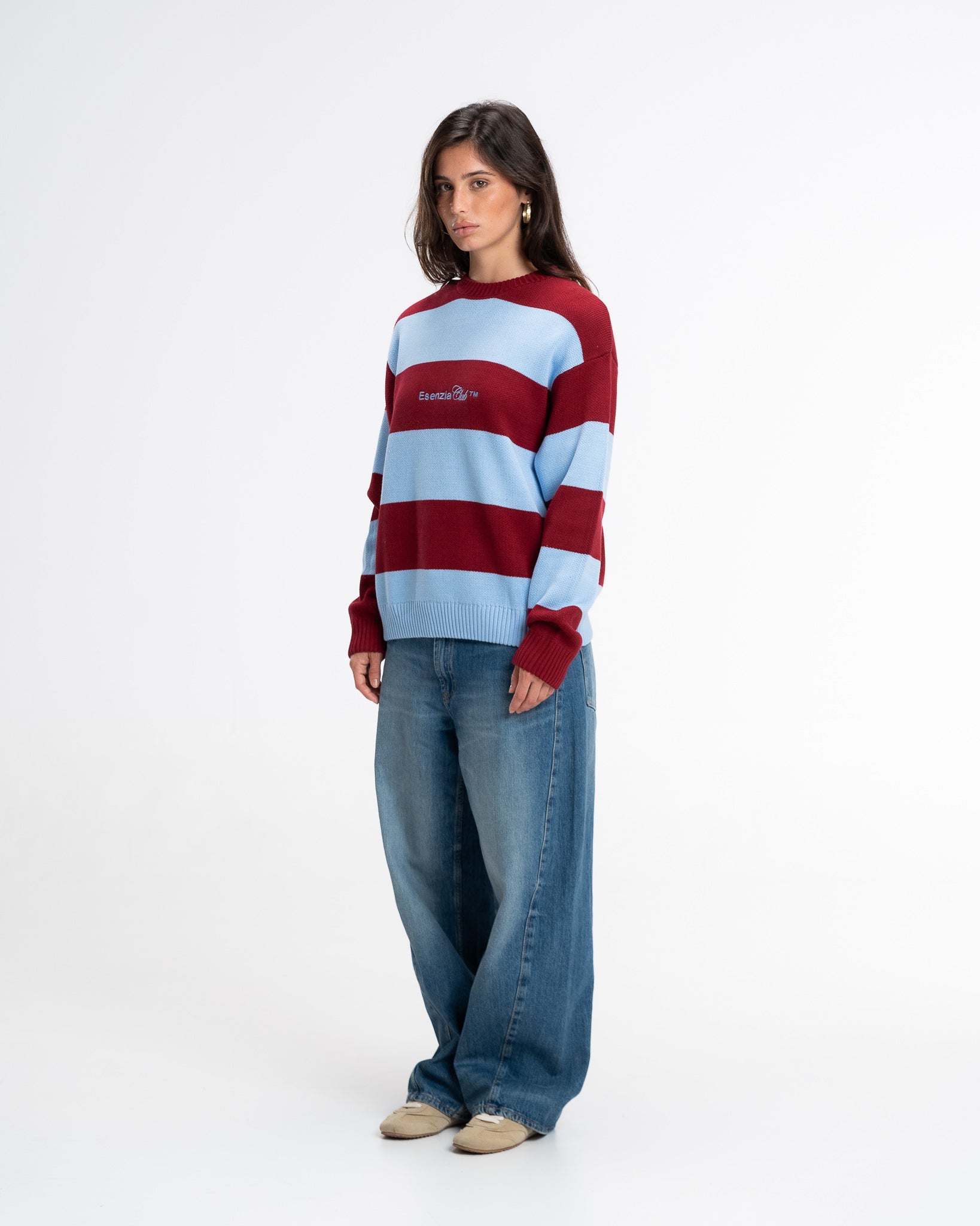 BLUE STRIPED KNIT SWEATER