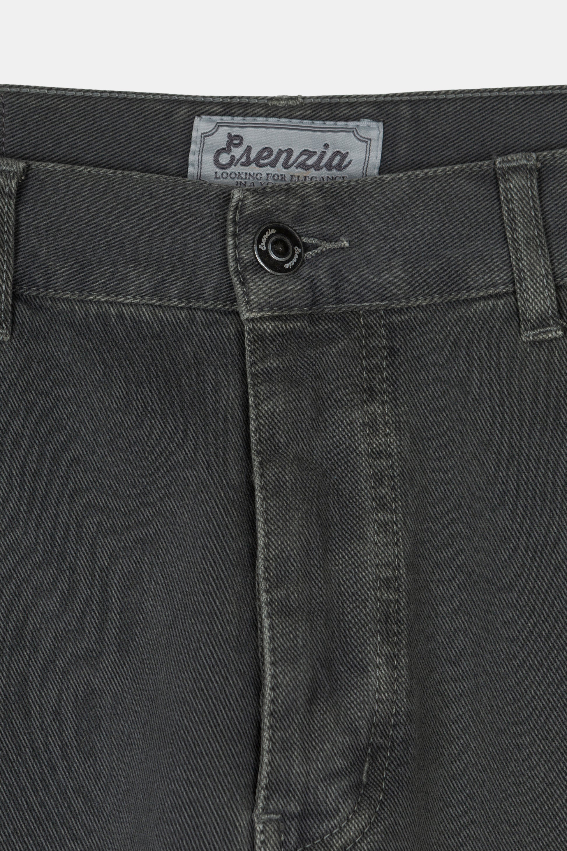 Cropped-cut trousers with a relaxed fit, made from 100% cotton denim twill. Featuring a five-pocket design and a 295 gsm weight, they are ideal for year-round wear. The fabric is sulfur-dyed, allowing for a gradual fade over time.